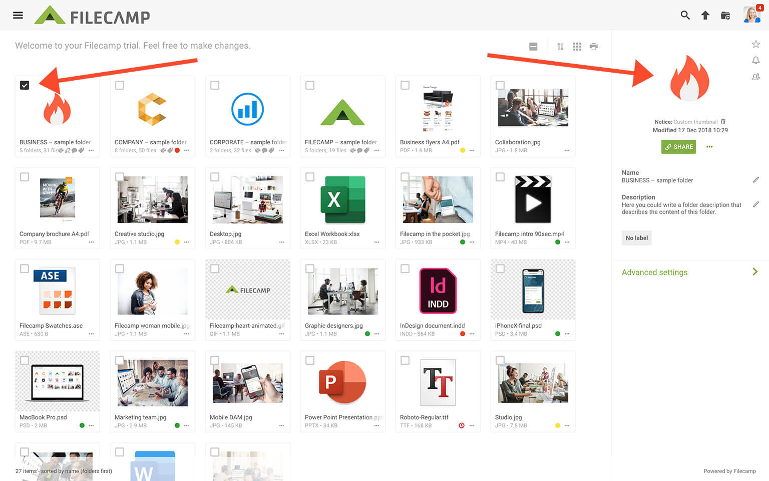 And you can now use the screenshot as a custom thumbnail to a file or folder in Filecamp 😃
